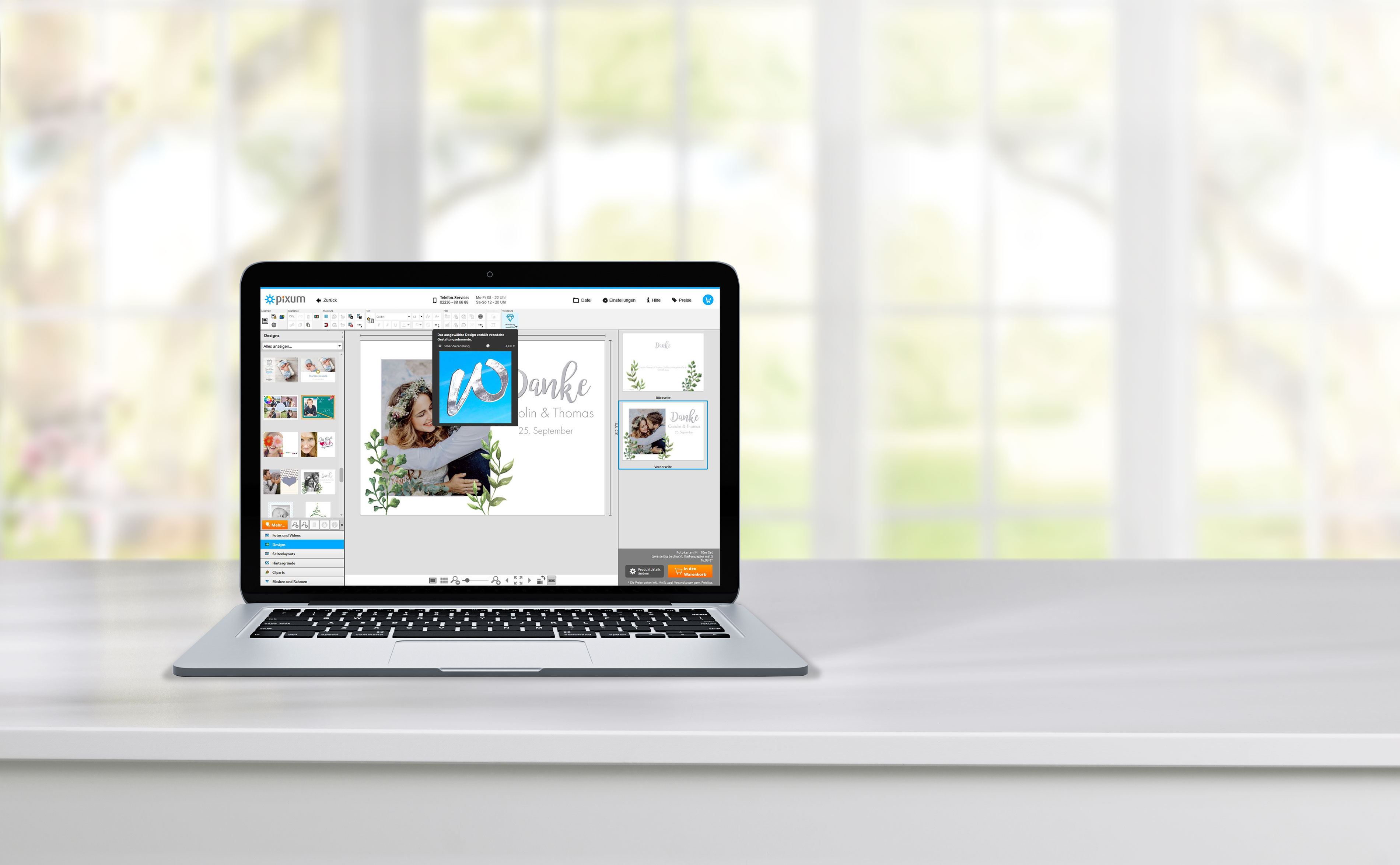 Hos Pixum kan du designe bryllupskort online eller i den gratis fotounivers software til computeren. Her finder du endnu flere designs og designmuligheder. Download softwaren hurtigt og nemt, og udforsk alle vores designs for at skabe dine perfekte bryllupskort.