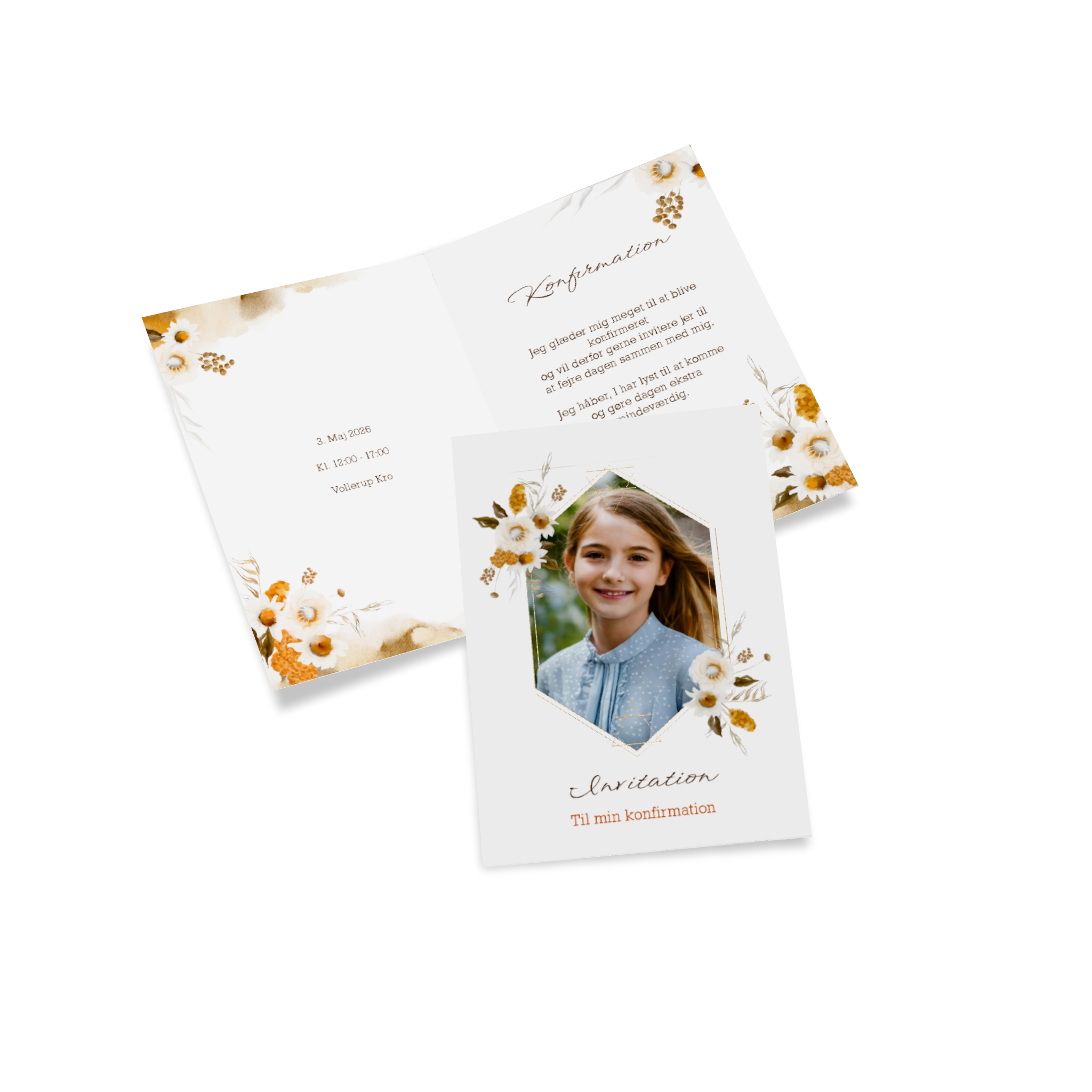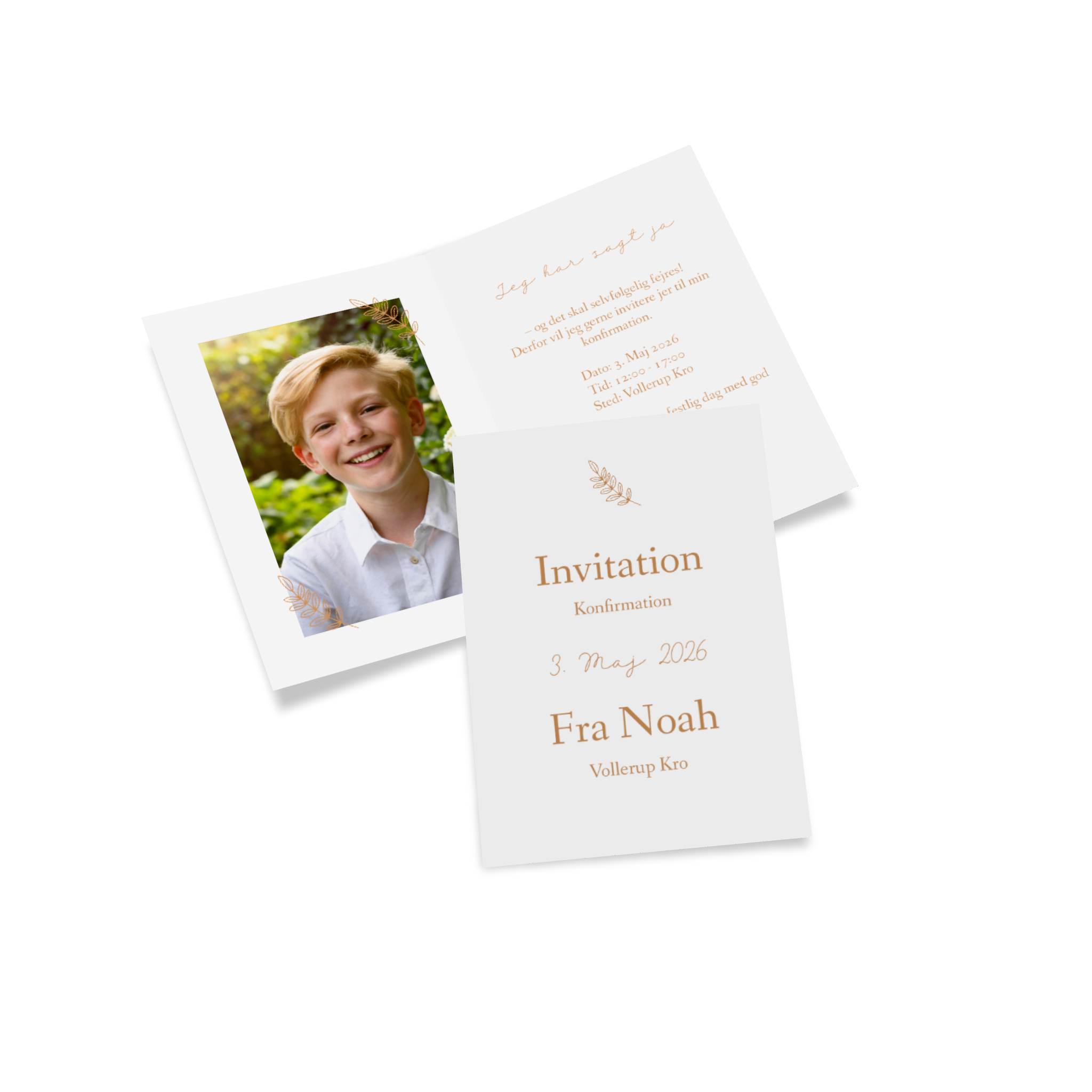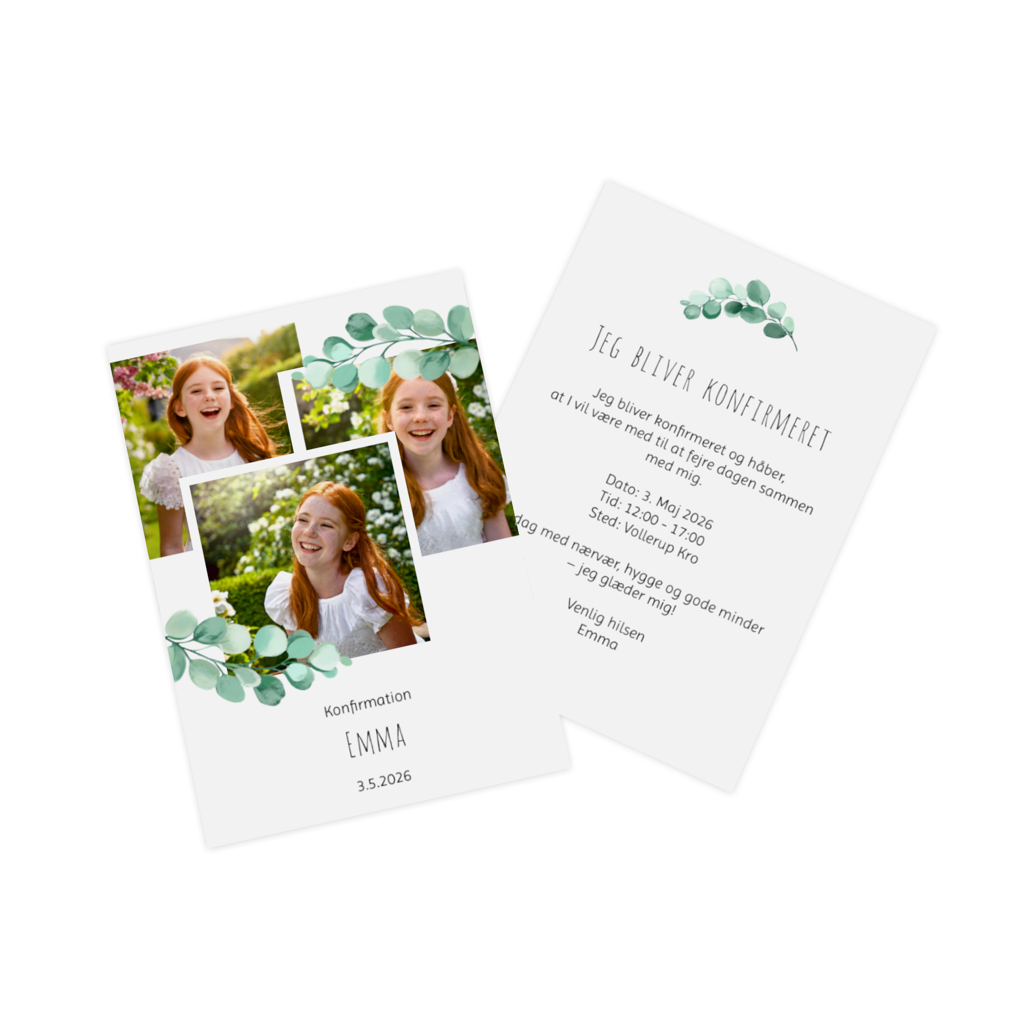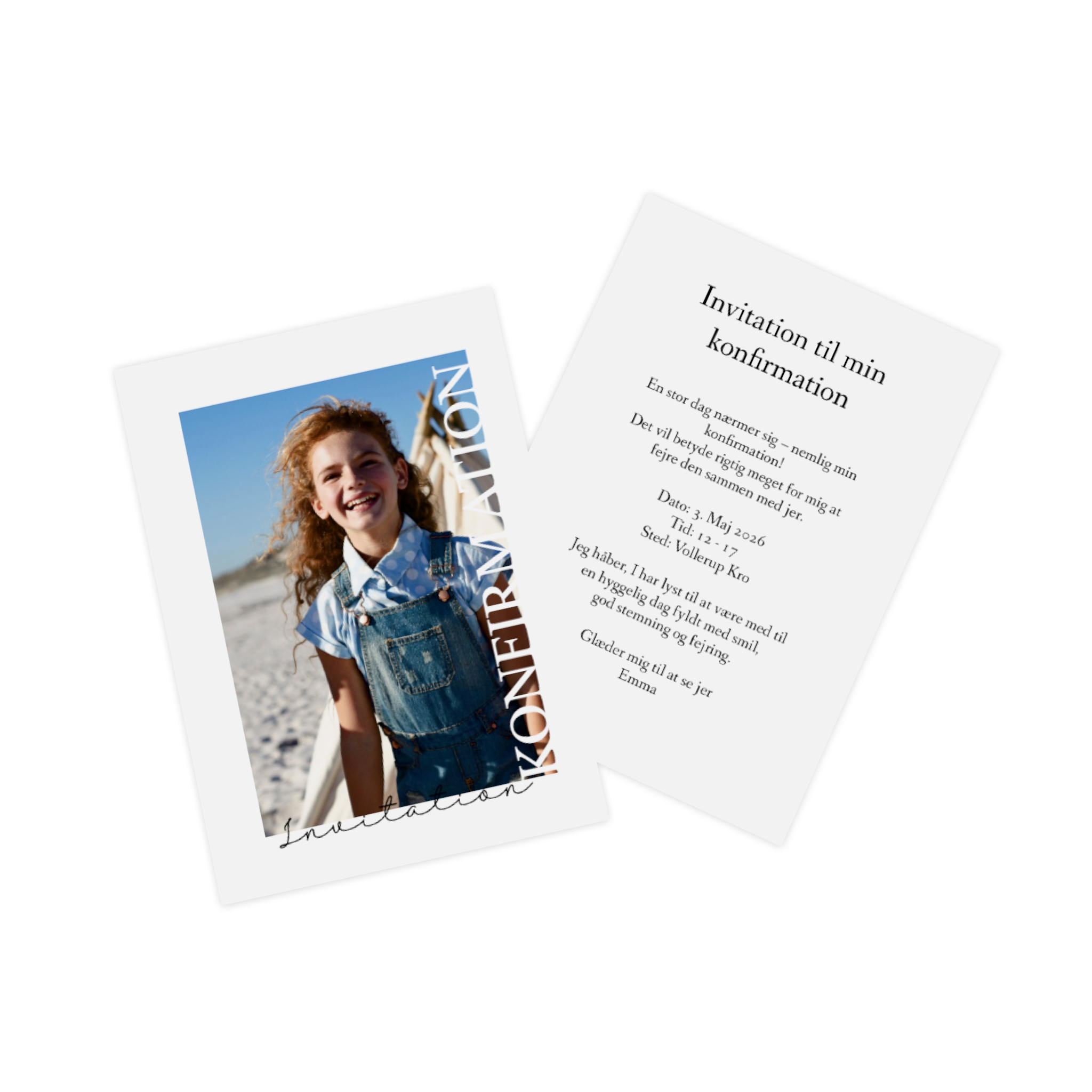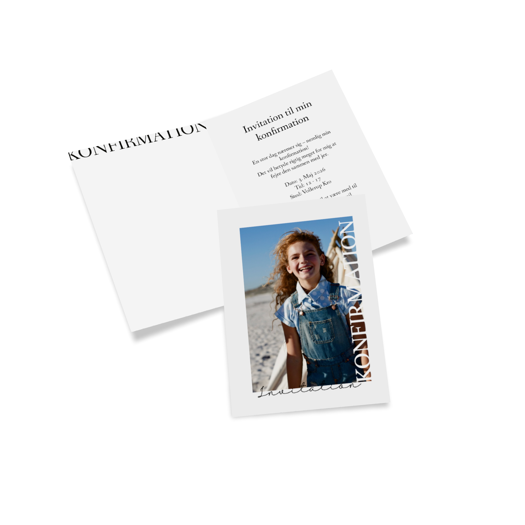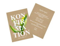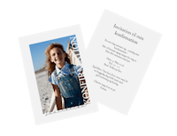 Med Pixum kan du designe dine konfirmationsinvitationer helt personligt og præcis efter din smag. Upload dine yndlingsbilleder, tilpas tekst, farver og skrifttyper, og læg sidste hånd på dit design.